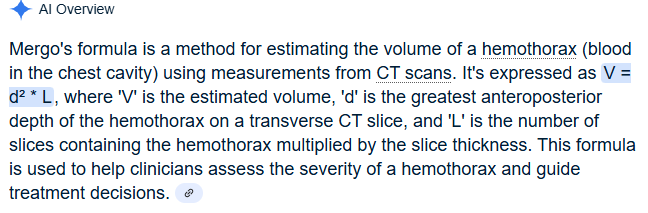 Over 300 ml of blood on a chest CT in a traumatically injured patient requires a tube thoracostomy. How do you calculate 300 ml of blood on a chest CT?